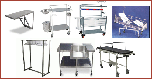 Hospital furniture dapat berkisar dari yang sederhana seperti bangku dan kursi yang terbuat dari plastik murah untuk menjadi high-end seperti tempat tidur rumah sakit-generasi berikutnya. Misalnya, selama lima tahun terakhir atau lebih, konvensional tempat tidur rumah sakit dikontrol secara elektronik telah transmuted dari menjadi item mana pasien beristirahat untuk menjadi penting dalam memberikan perawatan pasien. Produk-produk canggih terdiri frame, kasur, sidebar, dll yang diinstal dengan software untuk membantu menjaga tab pada pasien berat, gerakan, status, dan keamanan atau mereka bahkan mungkin memberikan perawatan terapi sederhana.